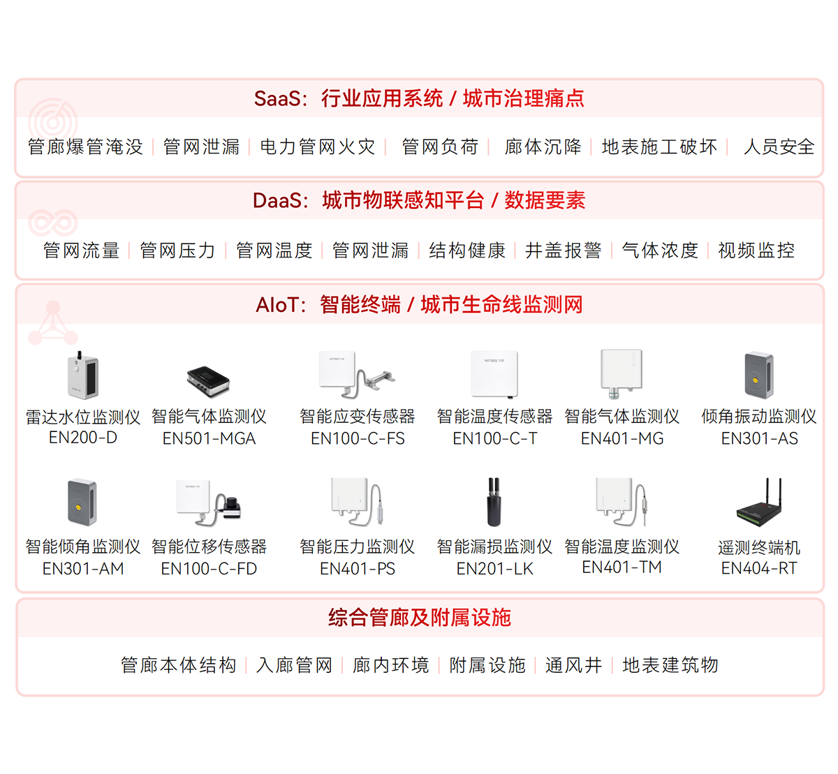 對管廊艙內(nèi)結(jié)構(gòu)的沉降、傾斜、震動和裂縫,管廊地表結(jié)構(gòu)沉降、位移和傾斜,管廊艙內(nèi)硫化氫氣體、甲烷氣體、溫濕度和氧氣,集水坑水位和孔口蓋板等數(shù)據(jù)實時監(jiān)測,同時接入視頻圖像,為管線風險監(jiān)測預(yù)警分析、廊內(nèi)環(huán)境及附屬設(shè)施監(jiān)測預(yù)警分析和管廊綜合監(jiān)測預(yù)警分析提供數(shù)據(jù)支撐。